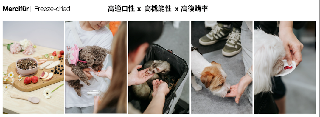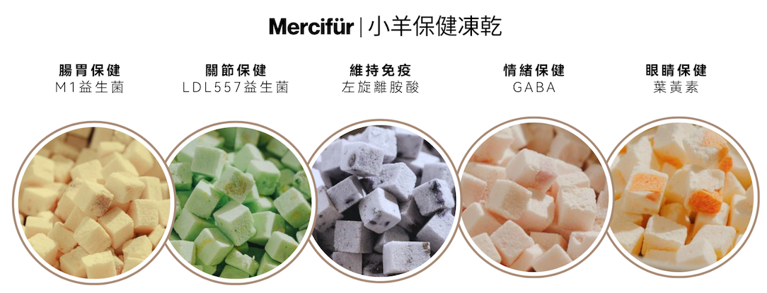 將益生菌、螺旋藻、左旋離胺酸、GABA等專利保健成分融入其中,將產品升級為「功能性」凍乾保健品。針對飼主特別注重寵物健康,以及有餵食保健品困擾的群體,有著極高的吸引力,也因此帶來高復購率。