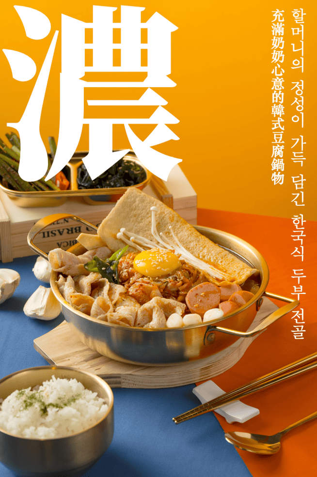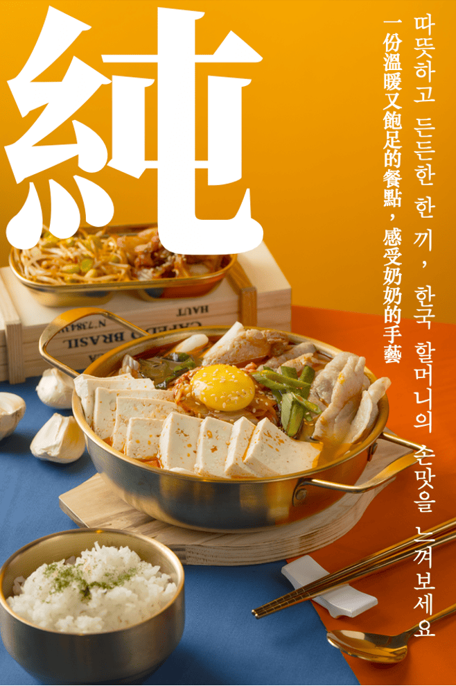 我們致力於打造台灣在地的韓式家常料理,讓全世界無論何時何地,都能用合理的價格,吃到一碗帶著溫度的韓式豆腐鍋物。
